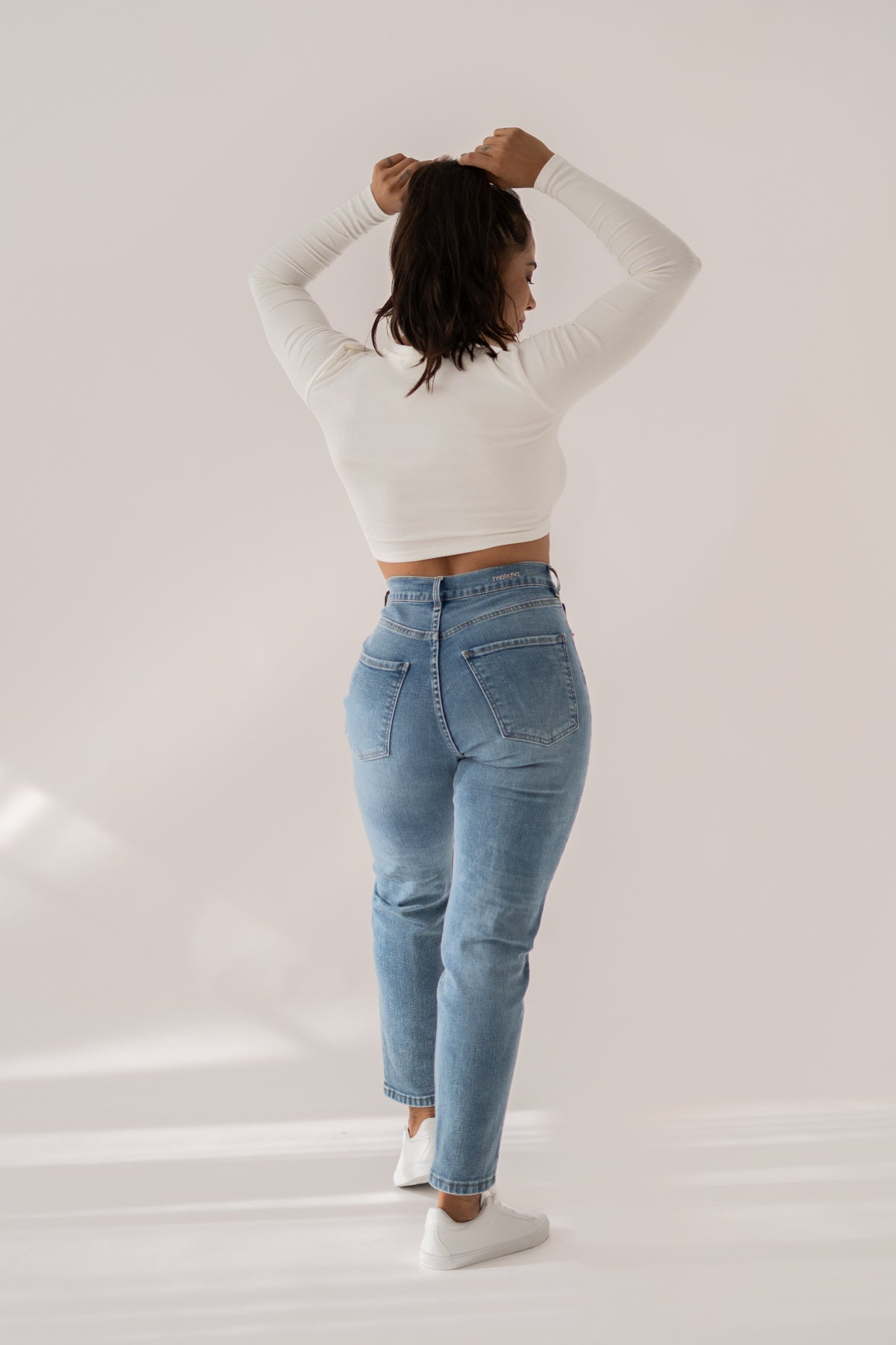 "Höga byxor - Ljusblå tvättad effekt 2025"