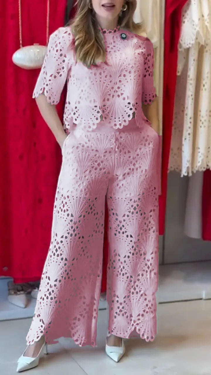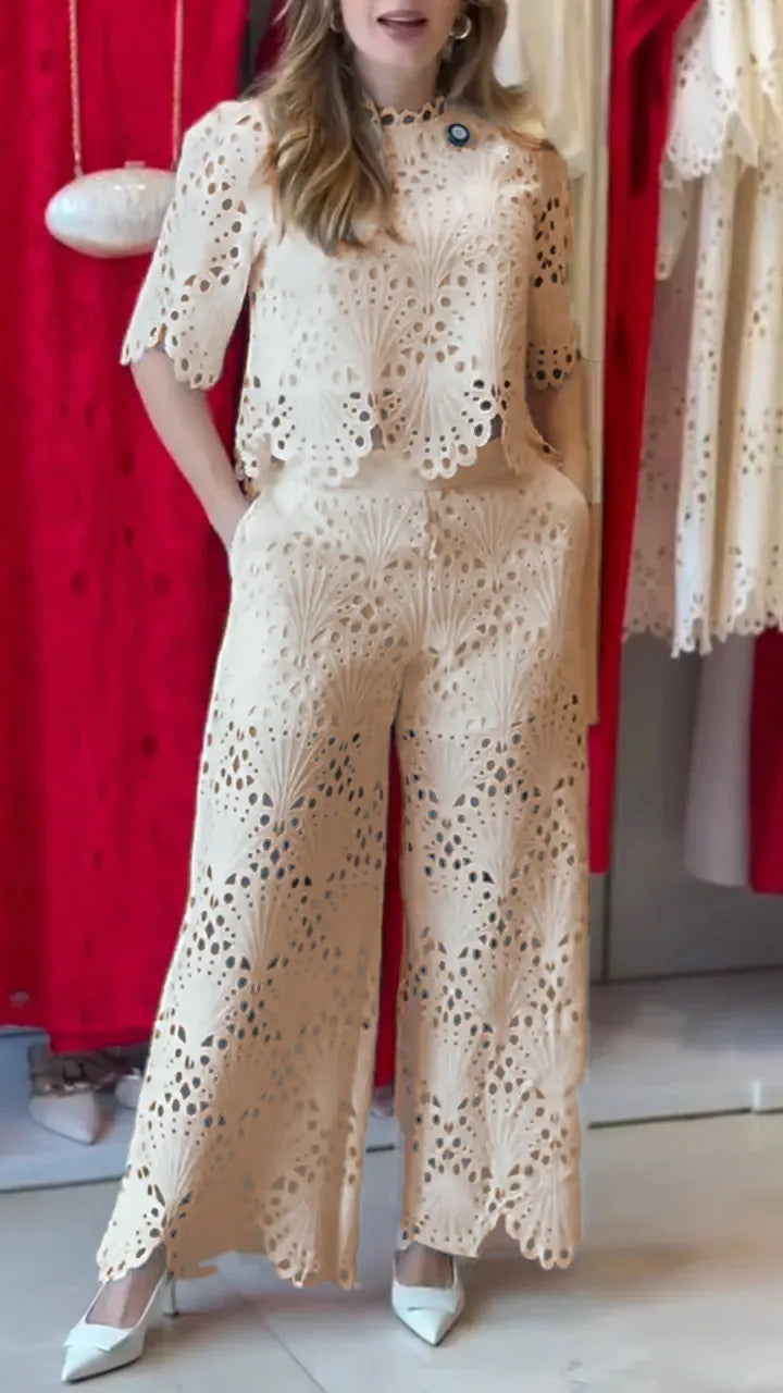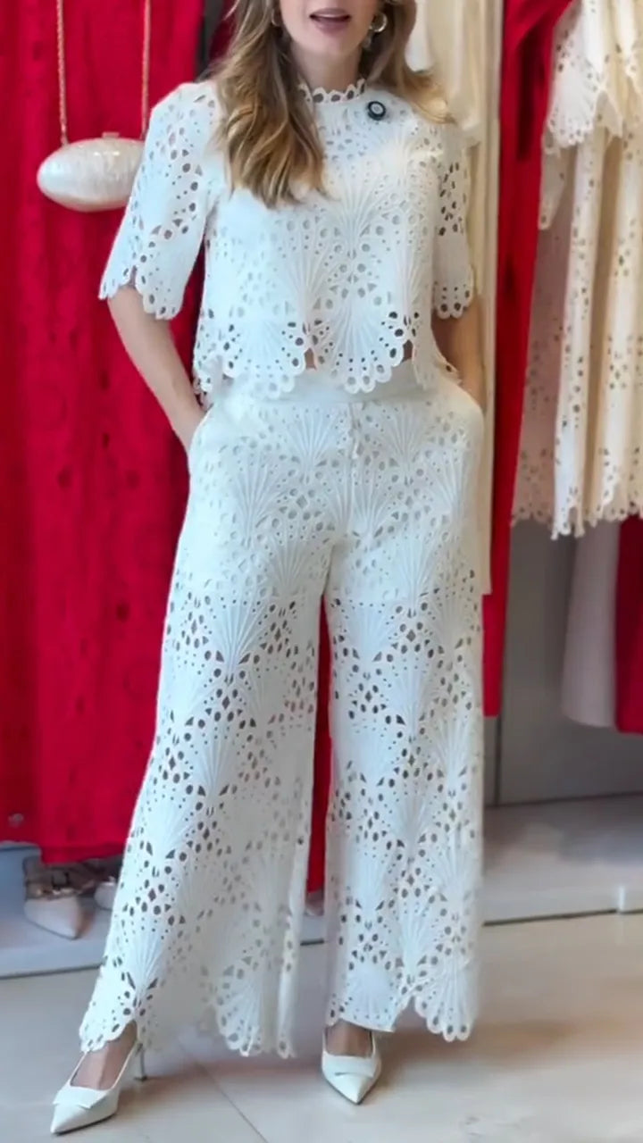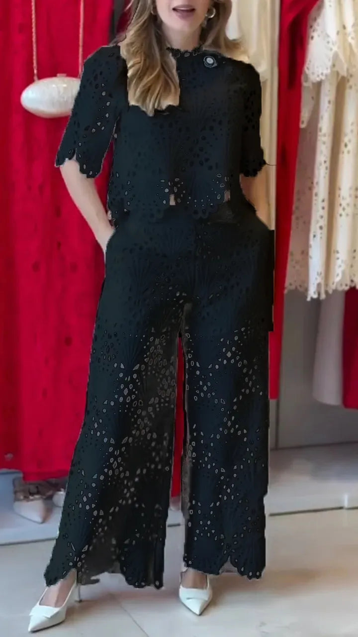 WOKRE™"Dams Leisure Set med Rund Hals och Håldetaljer av Hög Kvalitet"